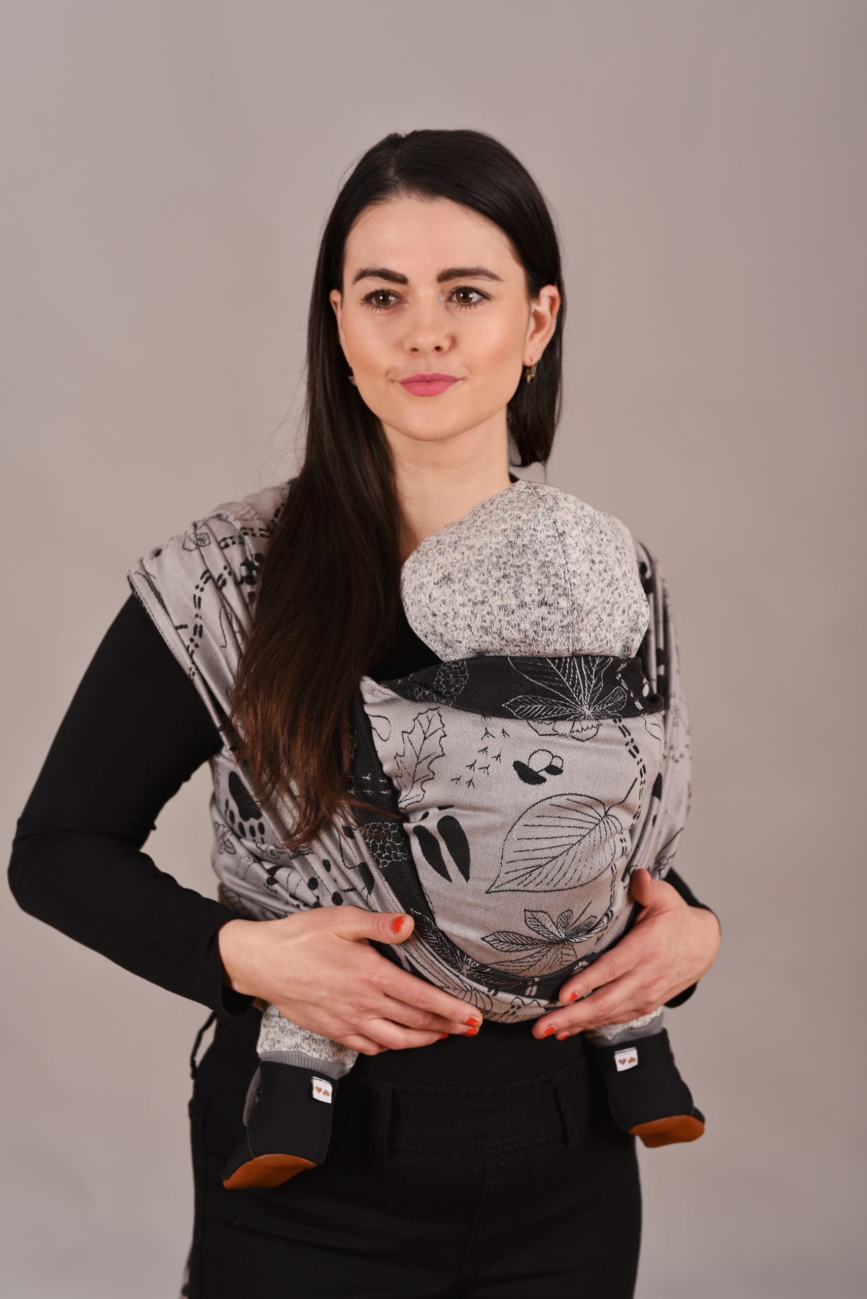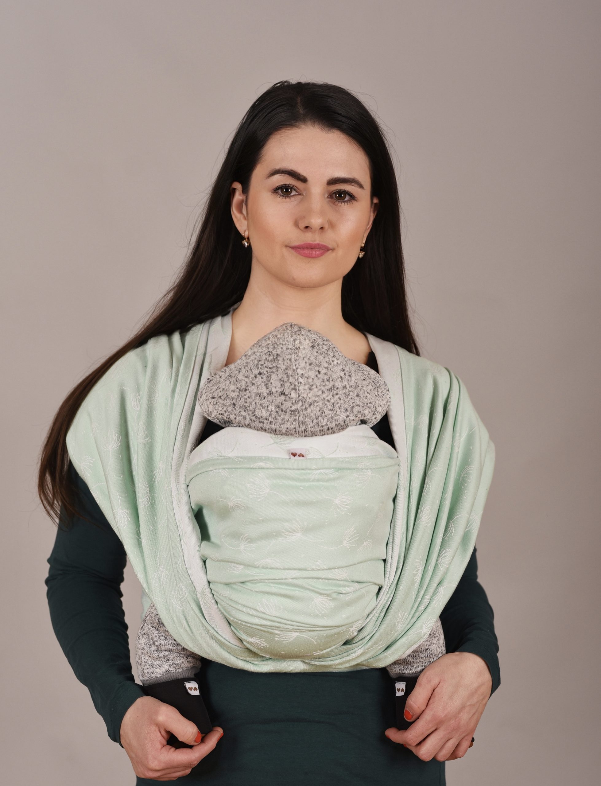 Zanošený šátek (cca už po dvou týdnech získá svoje ideální vlastnosti) je ustálený, jemně diagonálně pruží přesně jako má, uzel drží i po jednoduchém zauzlení. Šátek se neklouže, ale při vázání jemně klouže a je poddajná, takže s ní lehce váže i začátečník. Šatek má vynikající termoregulační vlastnosti, proto je vhodná jak v létě, tak v zimě. Nezařezává se a ani netahá, česaná organická bavlna ji dělá velmi jemnou.